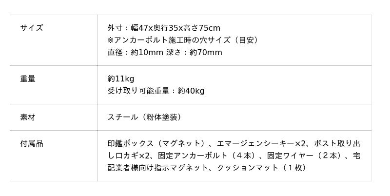 こちらのポスト一体型宅配ボックスは、組み立て不要の完成品でお届けします。
