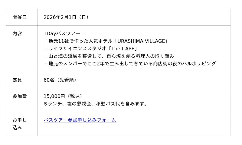 本ツアーの詳細な内容や当日のスケジュール、注意事項については、申込フォームページにてご案内しています。定員に達し次第、受付を終了いたしますので、参加をご希望の方はぜひお早めにお申し込みください。