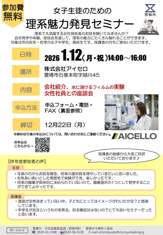 対象者:豊橋市内在住・在学の女子中学生・高校生と保護者