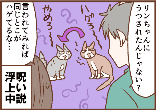 トトの毛の薄くなり方が本当にリンちゃんとそっくりなので、これもアレルギーかな…?とは思っているのですが、リンちゃんと入れ替わりにトトの同じ場所が薄くなり始めたので「リンちゃんからうつったのか?」と我が家では首を傾げております。