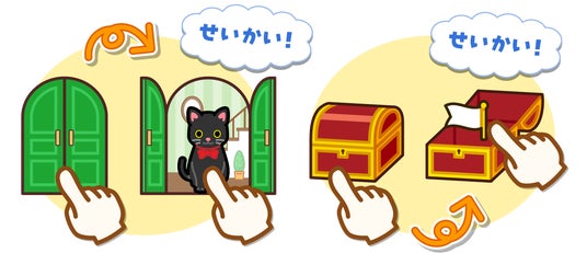 扉を開けたり、宝箱を開けたりと、簡単操作で遊ぶことができます。