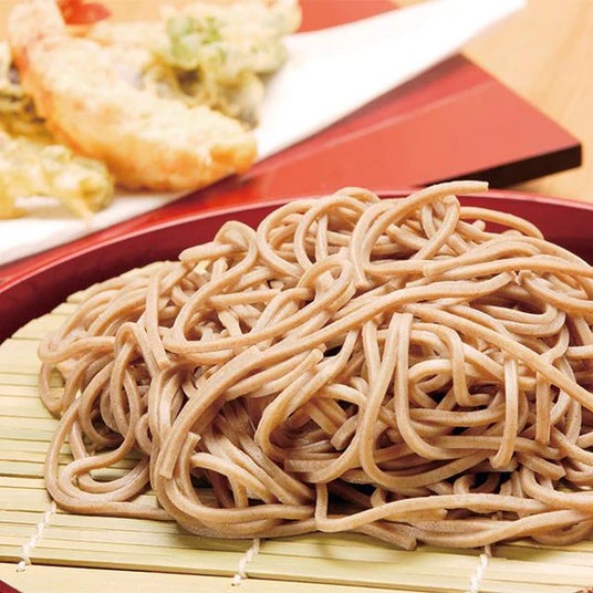原料となる玄そばを製麺直前に自家製粉し、挽きたてのそば粉を使用。やや太めで、色の黒いみっちりとした食感のそばは初代より続く主力商品です。