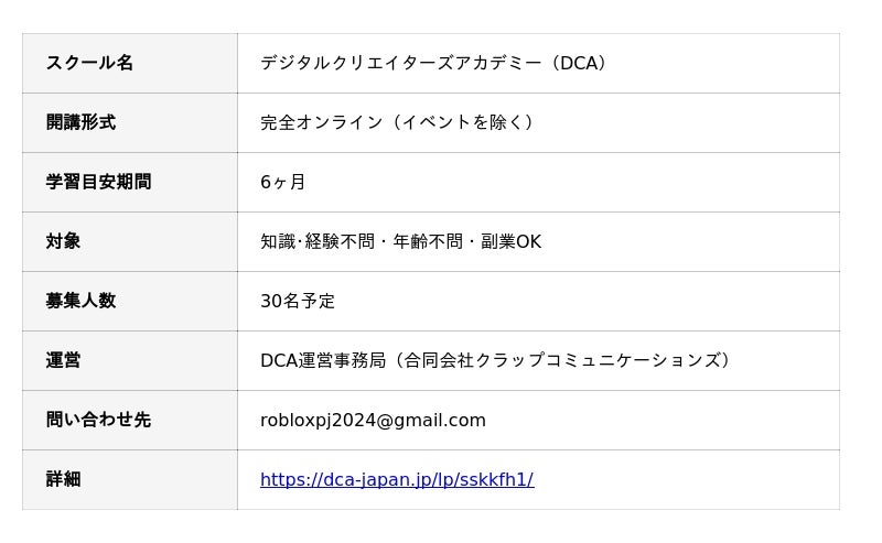 今後もDCAは、未経験からプロのRobloxクリエイターを目指せる学習環境を提供し、日本におけるデジタル人材育成に貢献してまいります。