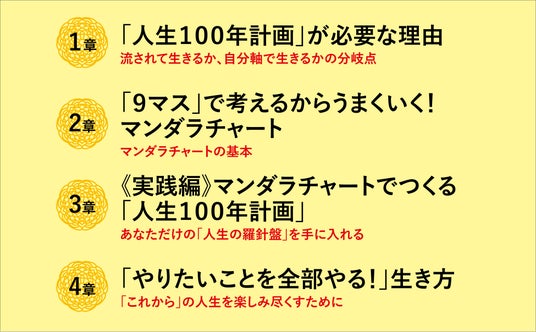 目の前のことをこなすだけの日々を送っていると、時間はどんどん過ぎていく。しかし、計画のない人生は、航海図のない旅と同じ。充実した人生を生きるためにぜひおすすめしたいのが、マンダラチャートを使った「人生100年計画」を立てること。