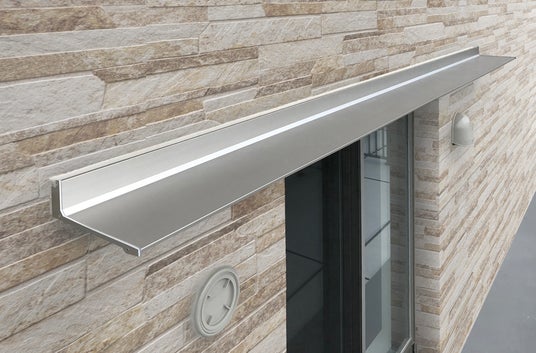今回、「アールエスバイザー(R)」の木造後付けシリーズに、新たにシンプルでシャープな意匠が特長の小ひさしタイプ「RS-MS-W型」「RS-M-W型」がラインアップされました。「RS-MS-W型」は、ブラケット(取付け金具)にひさしを取り付けるブラケット式。出幅は200mmと300mm、横幅は500mmから1mm単位で対応。「RS-M-W型」は直付けタイプで、出幅は100mmと180mm、横幅は500mmから1mm単位で対応。カラーはシルバー、ステンカラーの2種類から選択。耐積雪高は60cm(1800N/平方メートル )まで。木造建築物の窓や勝手口などの上部への設置に最適です。