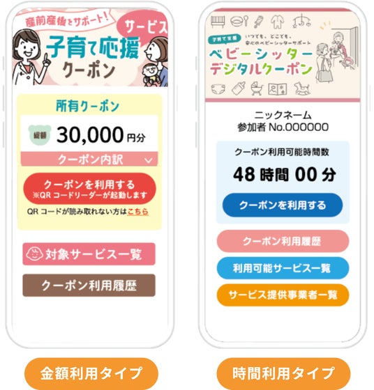 ベビーシッターやファミリーサポートを時間単位で利用できるデジタルクーポンです。
