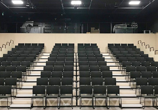 臨場感と視認性を重視したヒューリックホール京都の客席空間。