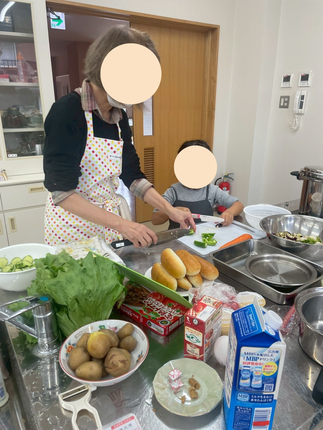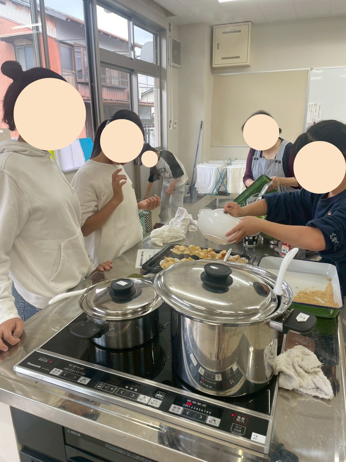 継続参加の小学校高学年女子グループが、今回もにぎやかに参加してくれました。何度かスタッフと一緒に料理をするうち、包丁の使い方にも徐々に慣れてきた様子がうかがえました。