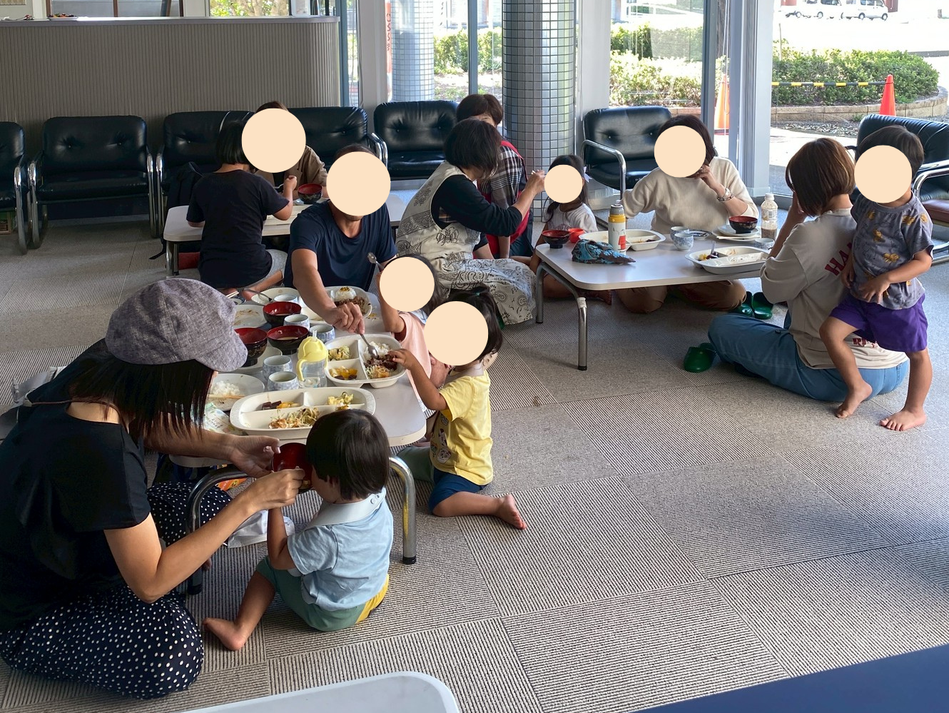 地域の秋祭りの日と重なったこともあり、低年齢層の子どもたちが多く参加。食事の後は、2階の遊び場で鬼ごっこやゲームなどを楽しむ子どもたちも見られました。
