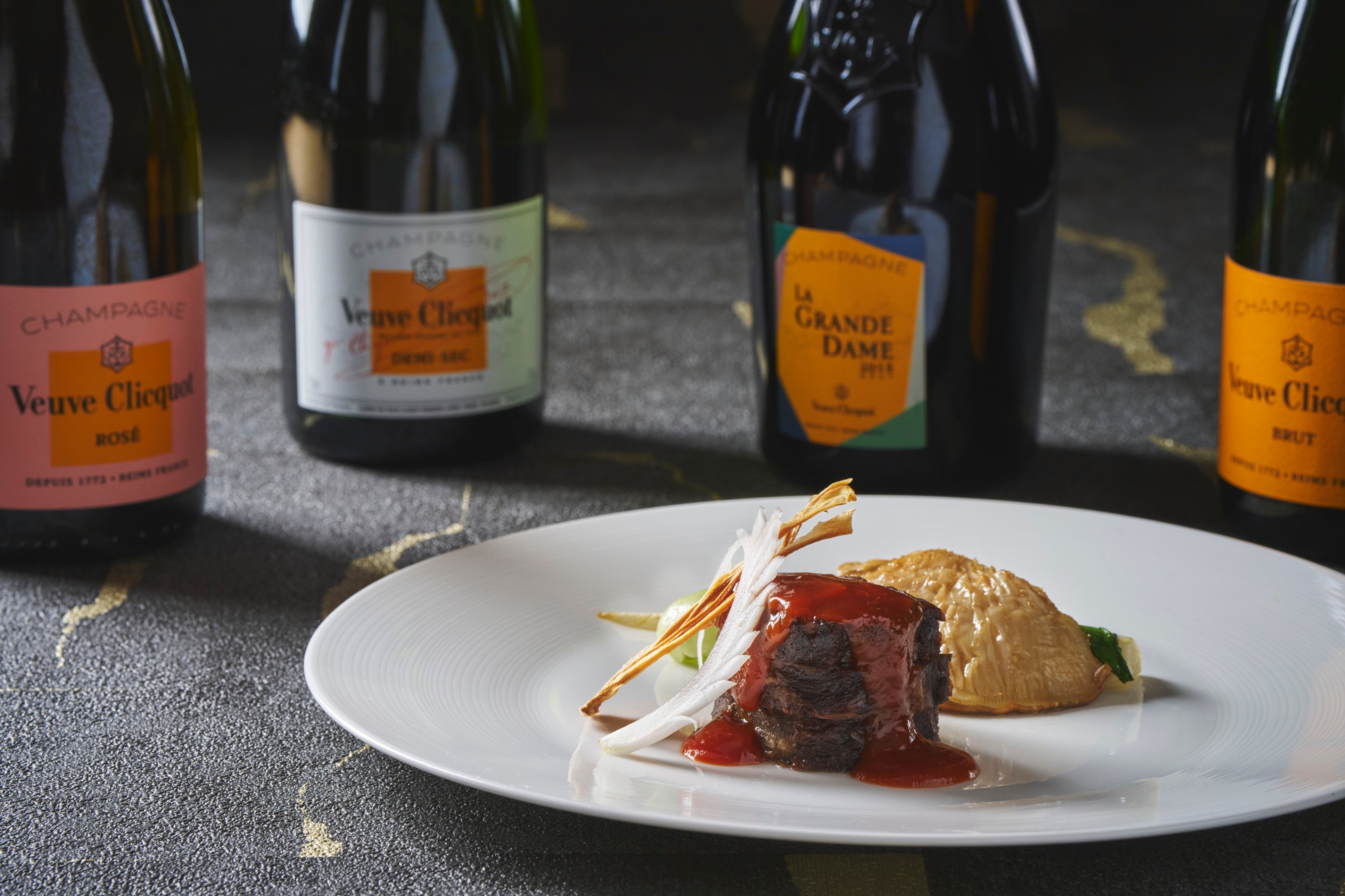 肉料理:国産牛頬肉の煮込み ヴーヴ・クリコ ローズラベルで濃厚に仕立てた一皿