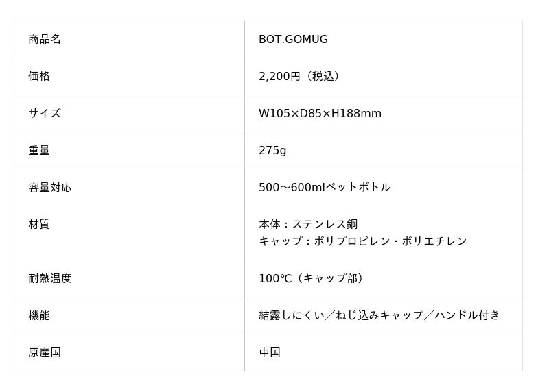 ペットボトルをそのまま入れて温度をキープできる「BOT.GOMUG(ボットゴーマグ)」を2025年11月に発売しました。