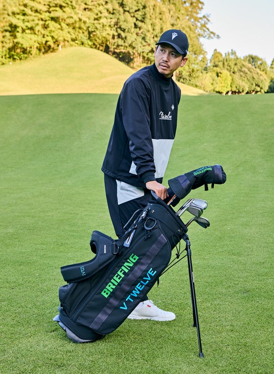 本コラボレーションでは、BRIEFINGのキャディバッグ「CR-4」 をベースに、V12のファッション性とBRIEFINGが得意とするミリタリーデザインが融合した特別仕様を製作。