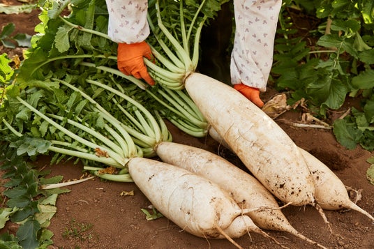 三浦市の伝統野菜「三浦大根」は、1本3~5kg、大きいものでは8kgにもなる大きな大根です。その歴史は古く、大正時代にさかのぼります。当時、主流だった練馬大根をベースに、三浦在来種の高円坊大根との交雑改良によって誕生しました。かつては三浦市の主力野菜でしたが、その大きさから、今では全体の出荷率の1%ほどしか生産されていません。