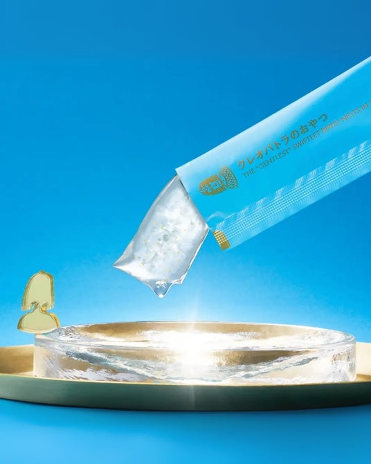 クレオパトラのおやつ|12g(トライアルキット3包入り)「クレオパトラのおやつ」 には、天然のつばめの巣原体と高濃度エキスを贅沢に重ねた W配合を採用。原体とエキスがもたらす時間差吸収を生かしながら、金箔・ビオチンなどの天然成分をバランスよく配合した栄養機能食品です。じっくりと土台を整え、肌や体をより良いリズムへ導く一品です。