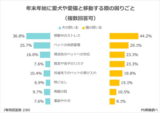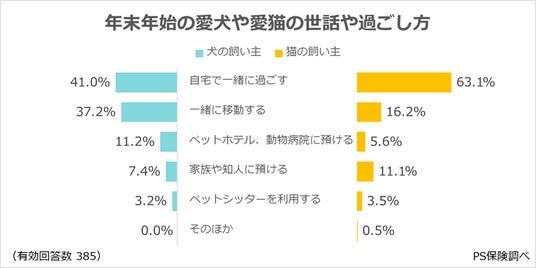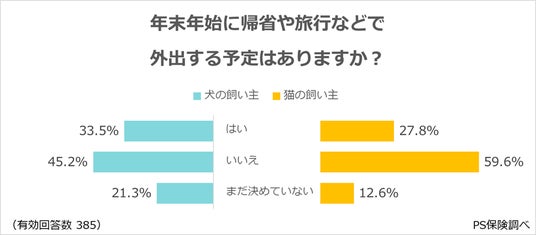 ペット保険「PS保険」を提供するペットメディカルサポート株式会社(本社:東京都港区、代表取締役社長:米満 明仁)はこの度、全国の20~69歳の犬や猫の飼い主1,799名(有効回答数386)にアンケートを実施し、「年末年始の愛犬や愛猫との同行事情」に関する実態を調査しました。その結果を、詳しく紹介いたします。