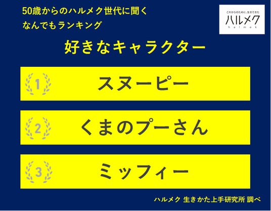 販売部数No.1(※1)雑誌「ハルメク」などのマーケティングやリサーチのコンサルティングを通じて、50代以上のインサイトを日々探求する「ハルメク 生きかた上手研究所」は、50歳以上の女性(事前調査506名、本調査546名)へのアンケート結果をもとにした「50歳からのハルメク世代に聞く なんでもランキング」を公開しました。テーマは「好きなキャラクター」です。