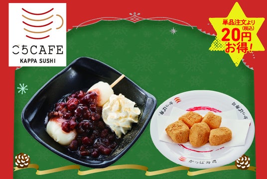 また、本格的で季節感のある「ごちそうスイーツ」をテーマにした、かっぱ寿司オリジナルのスイーツブランド「ごちCAFE」からデザートもご用意!もちもちの団子と北海道産あずきの甘さがよく合う 「北海道産あずきのふわもちクリームぜんざい」と「京わらび餅」をセットにした『もちもち和デザートセット』は食後にぴったりです。