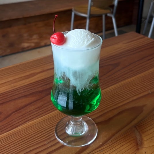 鮮やかな色合いと、甘く弾ける味わい。昔ながらのクリームソーダを、喫茶こともしらしいやさしい雰囲気で仕上げました。