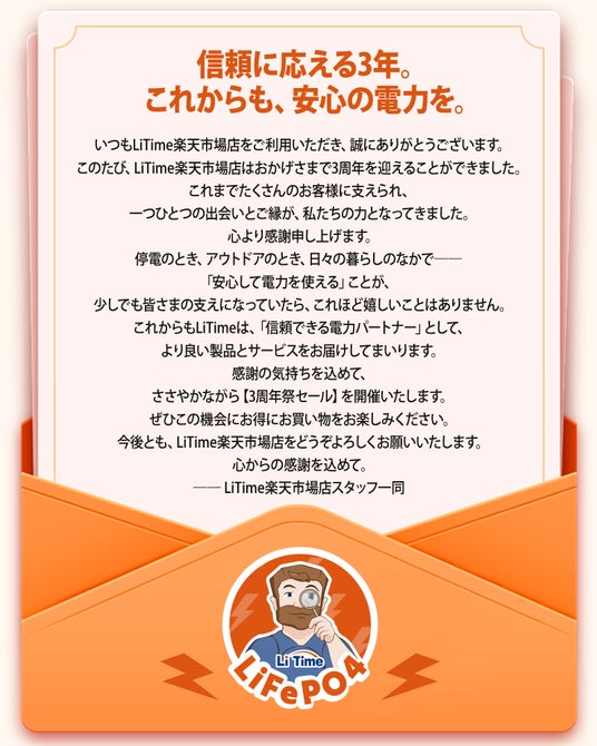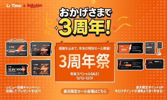 「LiTime楽天市場店 開店3周年記念キャンペーン」 を開催いたします。