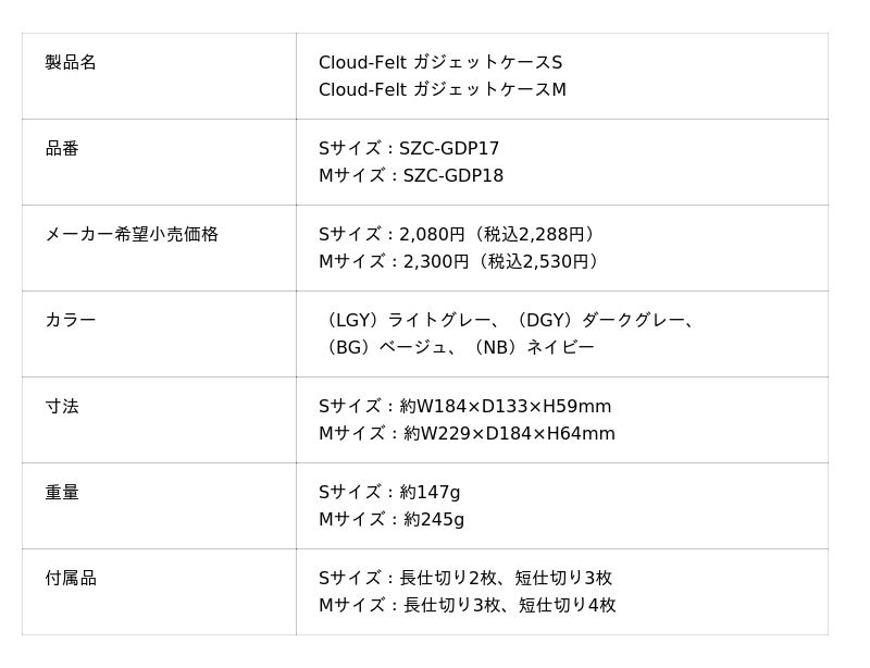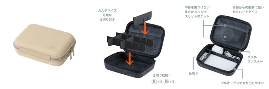 - 外部からの衝撃に強いセミハードタイプのガジェットケース- 中にはカスタマイズ可能な仕切りが付いており、収納するアイテムに合わせて細かく区切ったり、仕切りを取り外して広く使うことも可能