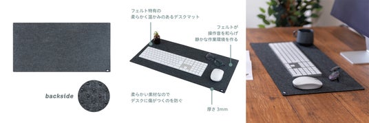 - フェルト特有の柔らかく温かみのあるデスクマット- デスク全体をやさしく覆い、キーボードやマウスの操作音をやわらげる