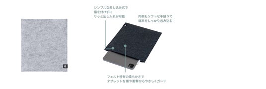 - シンプルな差し込み式で、サッと出し入れが可能なタブレットスリーブケース- フェルト特有のやわらかさで、タブレットをキズや衝撃からやさしくガード