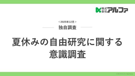 近年のデータに基づく意思決定を重視する傾向を背景に、株式会社アルファは、多様化が進む「夏休みの自由研究」に関する意識調査を実施した。現状と課題を整理し、その結果を販促施策の開発に活かすことを目的としている。