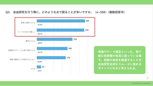 「準備に時間がかかる」や「テーマの決め方が難しい」という回答に着目