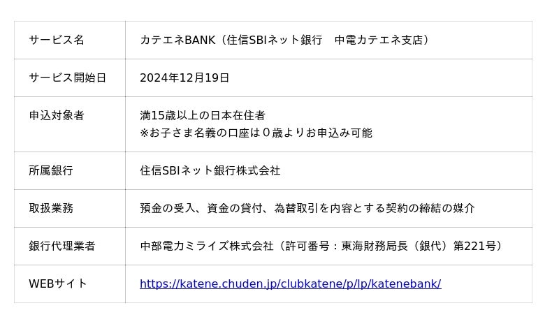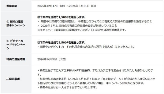 - 本プログラム・キャンペーンは、中部電力ミライズと住信SBIネット銀行が共同で実施いたします。