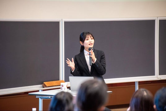 名古屋商科大学商学部主催の「第5回ビジネスプランコンテスト」の最終審査が、2025年12月10日(水)に開催されました。留学生も含む全8チームの熱意あふれるプレゼンテーションが繰り広げられ、聴講学生は、ビジネスプランを実行に移した時に想定される課題や、コストと利益の収支の予測などについて質問し、審査員も実際のビジネスにつなげるための視点から意見を述べ、大いに盛り上がりました。
