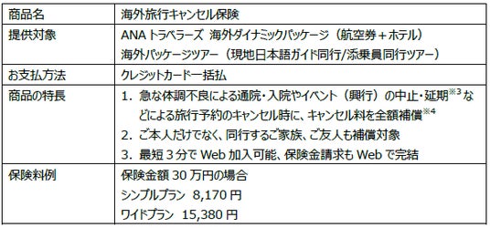 ANA X株式会社(本社:東京都中央区、代表取締役社長:神田 真也、以下「ANA X」)、ANAファシリティーズ株式会社(本社:東京都中央区、代表取締役社長:近藤 博之、以下「ANAファシリティーズ」)、損害保険ジャパン株式会社の子会社で少額短期保険業を営むMysurance(マイシュアランス)株式会社(本社:東京都新宿区、代表取締役社長:清水 廣臣、以下「Mysurance」)は、ANAトラベラーズ 海外ダイナミックパッケージ(航空券+宿泊)および海外パッケージツアー(現地日本語ガイド同行/添乗員同行ツアー)の予約と同時に、簡単かつシームレスに手続きが可能な「海外旅行キャンセル保険」のご案内を2025年12月17日より開始します。