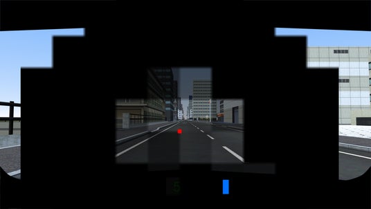 “ViMo” 評価用コース走行中画面(患者説明用視野障害マスクあり)