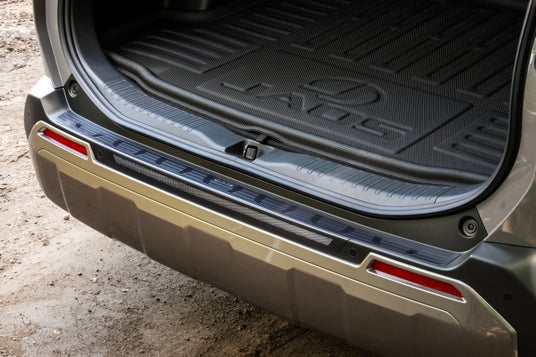 荷物の載せ下ろし時に傷をつけてしまいがちなリヤバンパーを保護する樹脂製プロテクター。ワンポイントドレスアップとしても効果的。