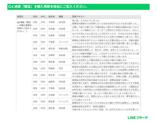 映画「国宝」を観た人に、感想を自由回答形式で聞きました。