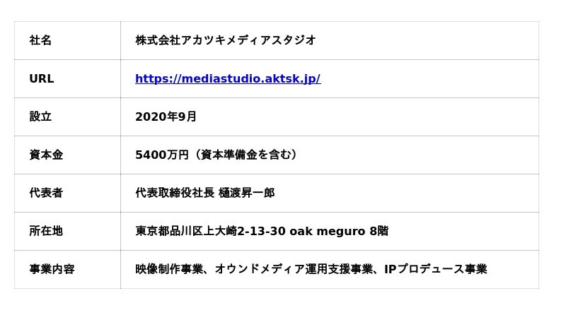 株式会社アカツキメディアスタジオ(本社:東京都品川区、代表取締役社長:樋渡昇一郎、以下「アカツキメディアスタジオ」)は、映像業界のプロフェッショナルの思考とビジネスの裏側に迫るYouTube「メディアスタジオ」を開設したことをお知らせします。
