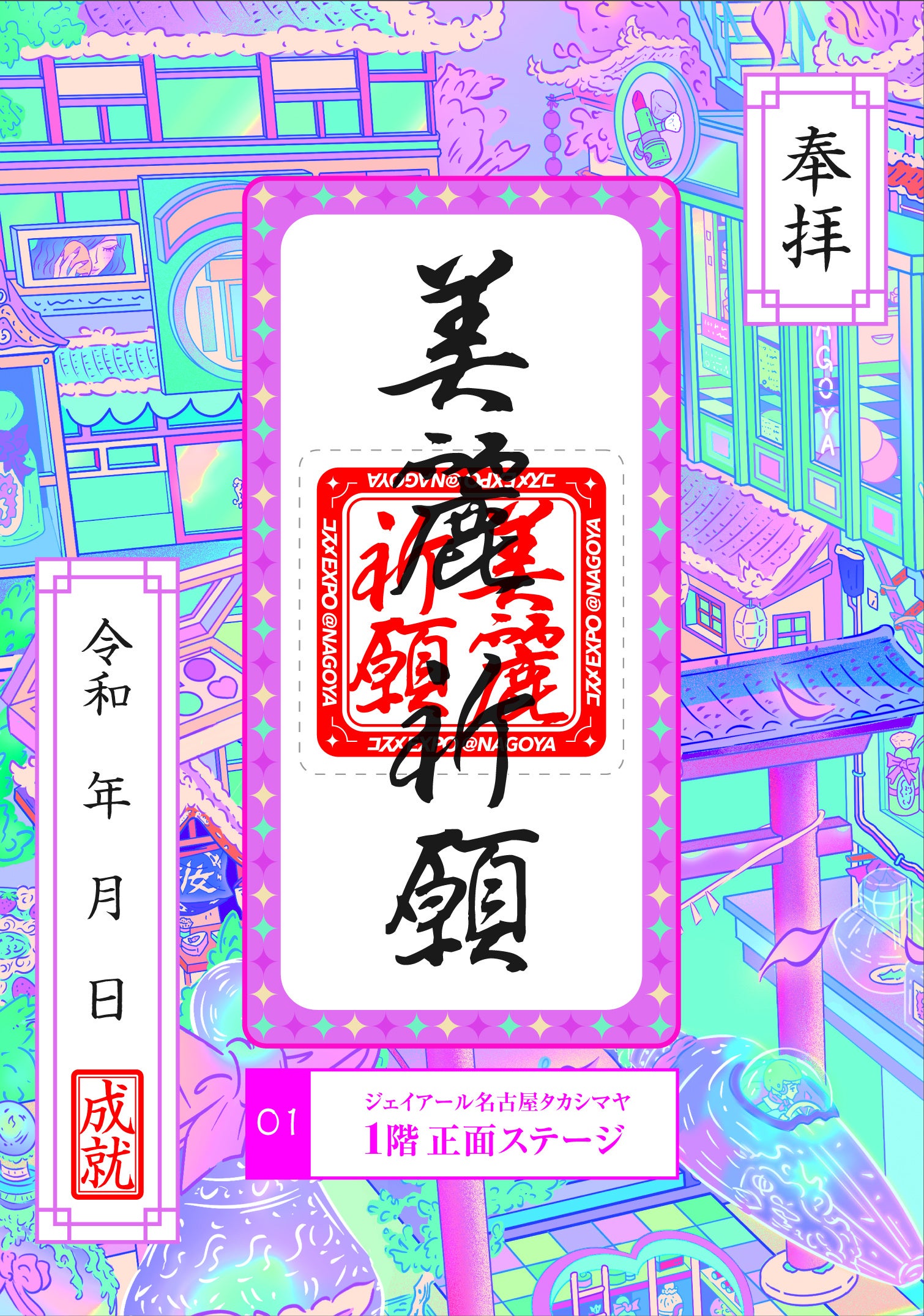 ネオン輝くピンクの鳥居とコンパクトケースを模した椅子に座って写真が撮れる、キュートなフォトスポットが登場。ステージでは、美容の神様が宿ると言われる京都の「河合神社」オリジナル絵馬(※)に理想の顔を描いて美麗祈願をしていただけます。