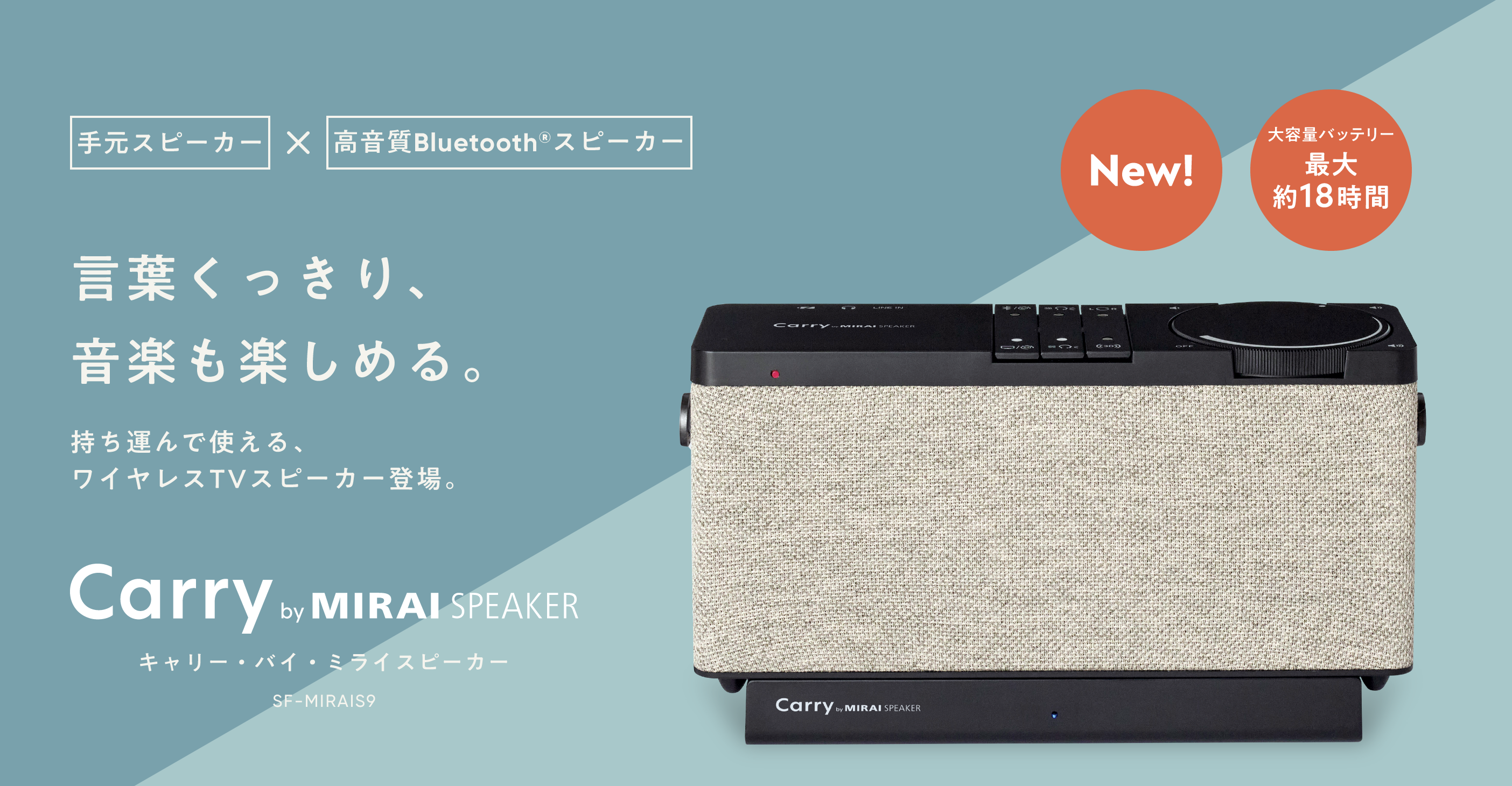 言葉くっきり、音楽も楽しめるBluetooth(R)︎搭載の手元スピーカー「Carry by MIRAI SPEAKER」新発売 -