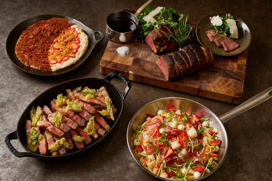 ボリューム感のある肉料理と、いちごを使用した創作料理やスイーツをご用意