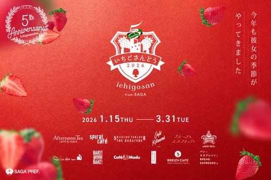 佐賀県は、佐賀のブランドいちご「いちごさん」と表参道のカフェ・レストランがコラボレーションし、「いちごさん」を使ったスイーツメニューを提供する特別企画「いちごさんどう2026」を、2026年1月15日(木曜日)から3月31日(火曜日)までの約2ヶ月間開催します。