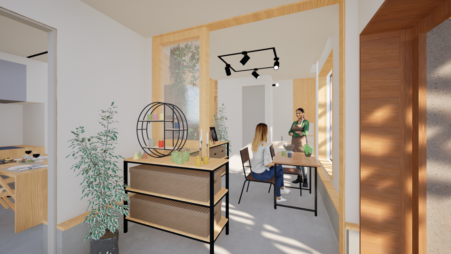 職住一体で小商いもできる店舗兼用賃貸住宅モデルです。住みながら自己表現の場として小商いをはじめる新しい生き方、地域とのつながりを深めるウェルビーイングな暮らしを提案します。