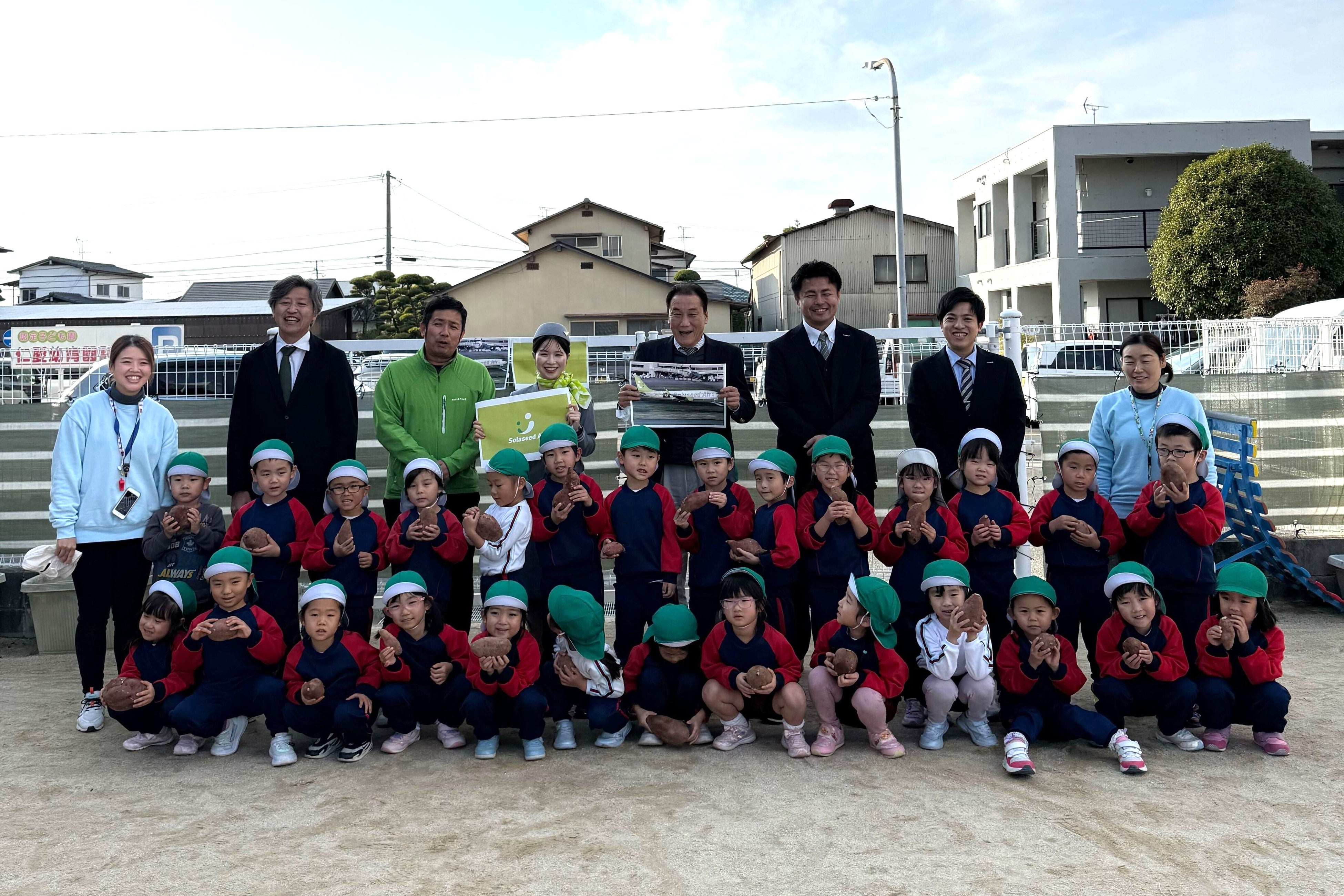 当社は、2023年5月に株式会社イノP(本社:熊本県宇城市 代表取締役:宮川 将人)と共に地域の発展に寄与することを目的として包括的連携協定を締結し、その一環として 「ソラシドエコファーム を開園しました。日頃から地域の方々に支えていただいていることへの感謝の想いから、園児の皆さんが植え付けや収穫のお手伝いをしてくださった宇城市の 「みすみ保育園」、イノPの代表取締役・宮川氏とのご縁のある熊本市内の「仁愛幼育園」「ケアホーム蓮台寺」に寄贈しました。