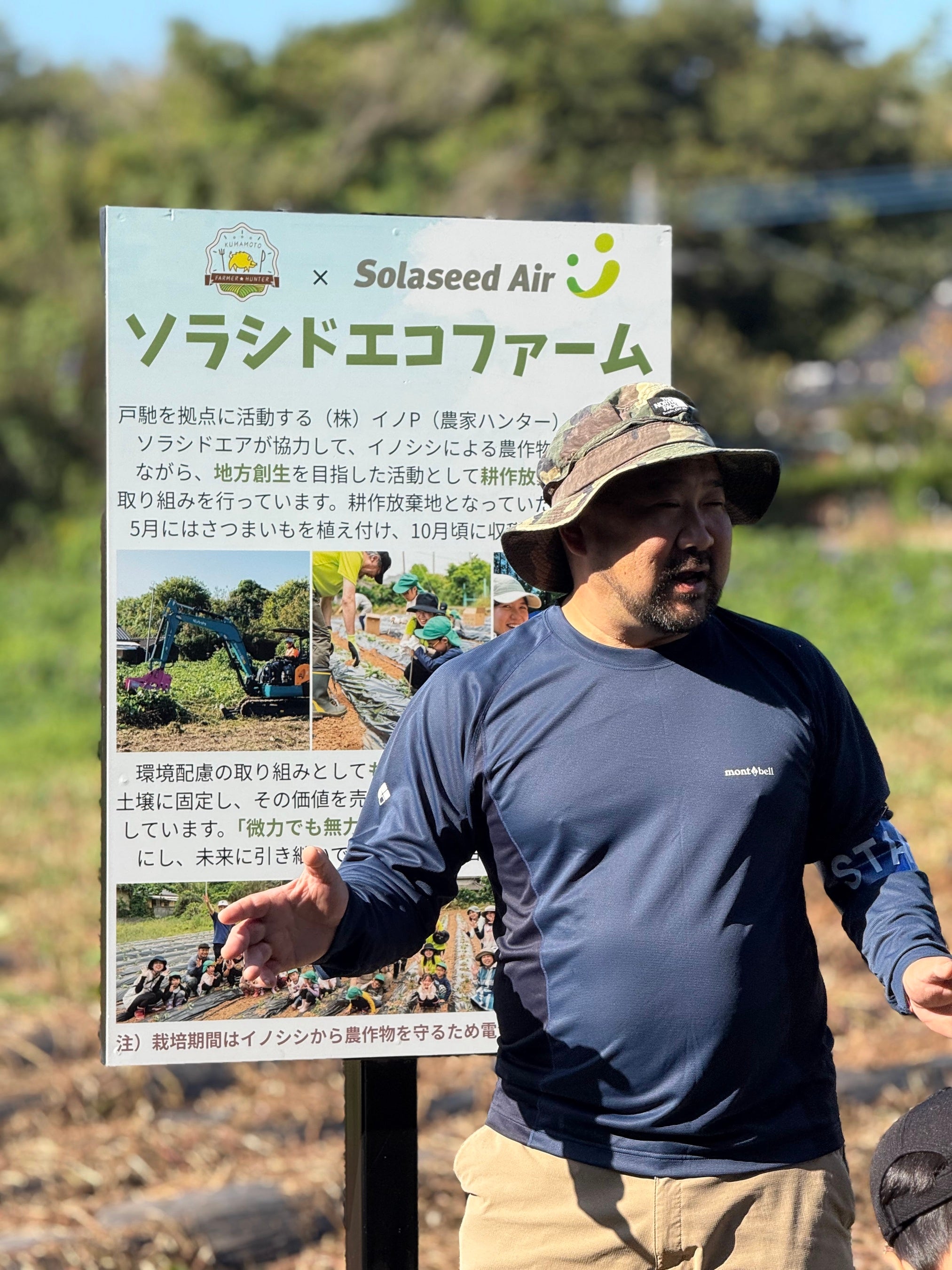 ソラシドエアとイノP様で取り組む 「ソラシドエコファーム」の活動は3年目を迎え、サツマイモの植え付けや収穫、早生桐や栗の植樹を行い、地域の方々にも参画をいただく活動を展開しています。11月1日(土)にはイノP様を含む、熊本県宇城市戸馳(とばせ)島の事業者が中心となって開催した農業体験イベントで「ソラシドエコファーム」を活用いただきました。今後はより一層、活動の認知を広げ、関係人口の創出を図るべく、宇城市をはじめ熊本県内外の方にも足を運んでいけるような活動を目指し、地域の発展に寄与できるよう努めてまいります。