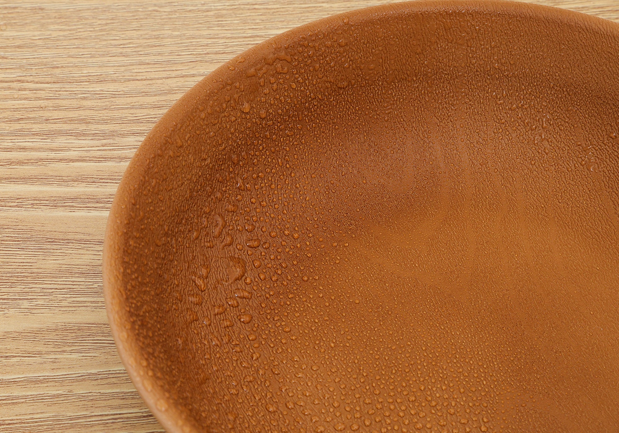 当社は、この負担を少しでも減らすため、「水も油もサッと弾く」という新しいアプローチに着目し、撥水加工を施した合成漆器を開発しました。油汚れが落としやすくなることで、食器洗いにかかる時間と手間を大幅に削減し、日々の暮らしにゆとりをもたらすことを目指しています。