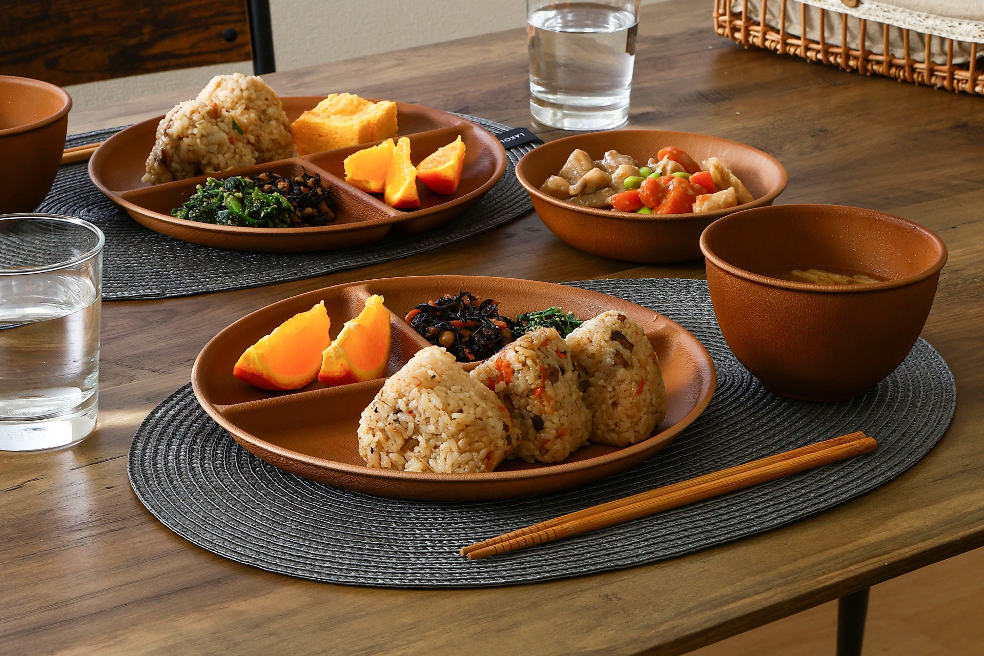 さらに、温かみのある木製食器のような質感を持ちながら、従来の木製食器では難しかった「レンジ・食洗機対応」を実現。PET素材を採用することで割れにくく、普段使いしやすい高機能食器として開発いたしました。