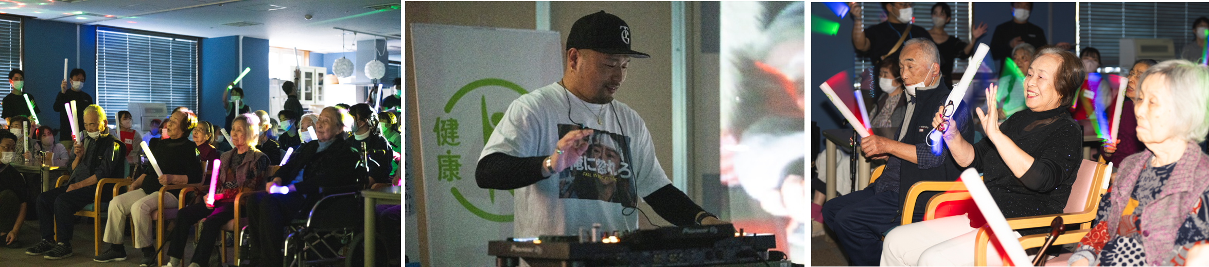 AlphaThetaは「音楽で人をつなぐ」をミッションに掲げ、年齢や経験を問わず誰もが音楽に触れられる場づくりに取り組んでいます。そうした想いのもと、DJ GEN氏と協力し、ロマンディスコ開催日にあわせて介護施設内にDJ体験ブースを設置しました。懐かしい楽曲にあわせて自ら音を操作する体験は、参加者同士の会話を促し、世代を超えた自然な交流が生まれるきっかけとなります。音楽ならではの楽しみ方を通じて、新しいレクリエーションの可能性を探る取り組みです。