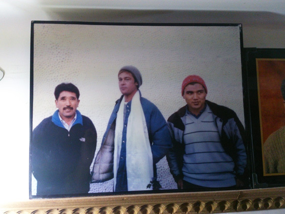 ロビーに飾ってあるホテルオーナーとアミール・カーンの記念写真。『きっと、うまくいく』の撮影後、ラダックが洪水被害に見舞われたときも復興の応援に訪れたそうで、誰に聞いてもアミールへのリスペクトを口にしていた。