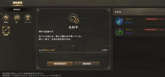 各職業に1種ずつ補助職業を実装しました。キャラクターレベルに応じて希少~英雄等級のスキルを獲得でき、補助職業の権能によりステータスやスキルダメージを強化できます。