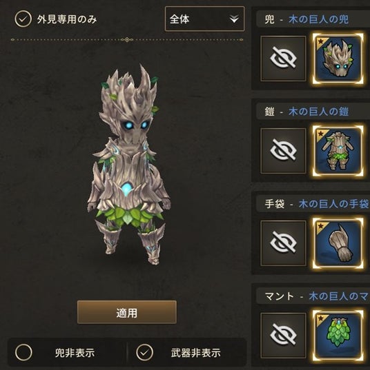 報酬内容を刷新し、「布切れ」アイテムを集めることで、「木の巨人外見選択召喚券」を製作可能です。