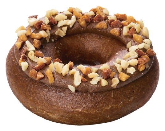 『ジャンドゥーヤ クリーム』は、イタリア発祥の“ジャンドゥーヤ”をイメージしたドーナツです。チョコ生地のドーナツに、カカオマスとヘーゼルナッツペーストを練り込んだコクのあるジャンドゥーヤクリームをぐるっとしぼり、チョコレートと相性の良いローストしたヘーゼルナッツと香ばしいキャンディングアーモンドを贅沢にトッピング。ナッツの香りと食感を楽しむことができる贅沢な一品です。
