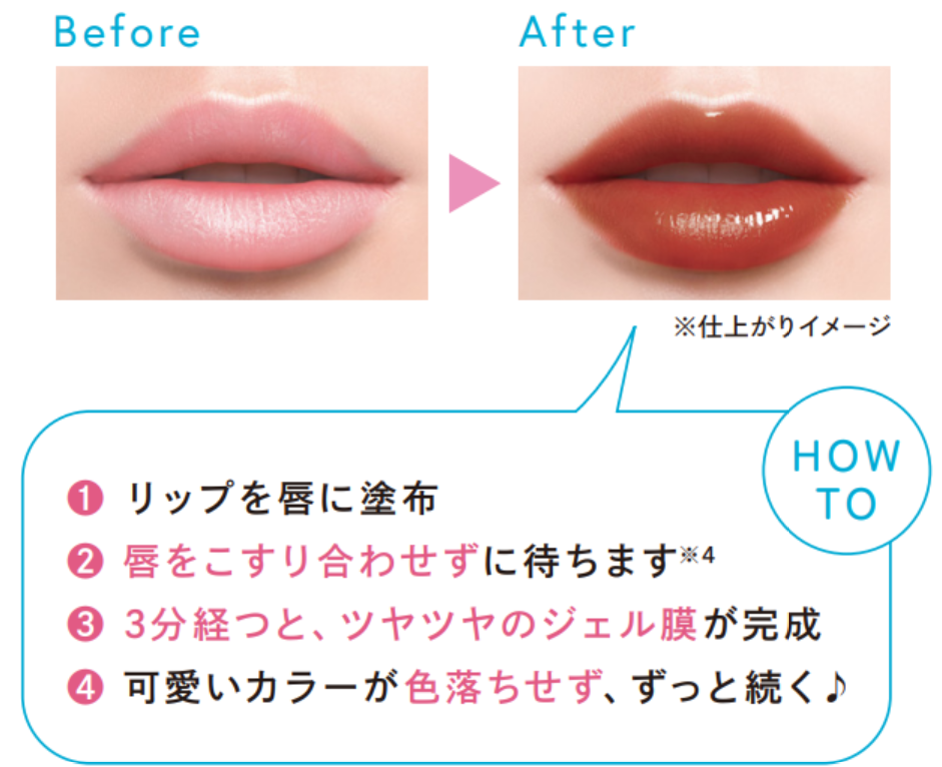 2.ジェル膜処方×プランプ※1効果で塗りたてのむっちり質感・発色がつづく